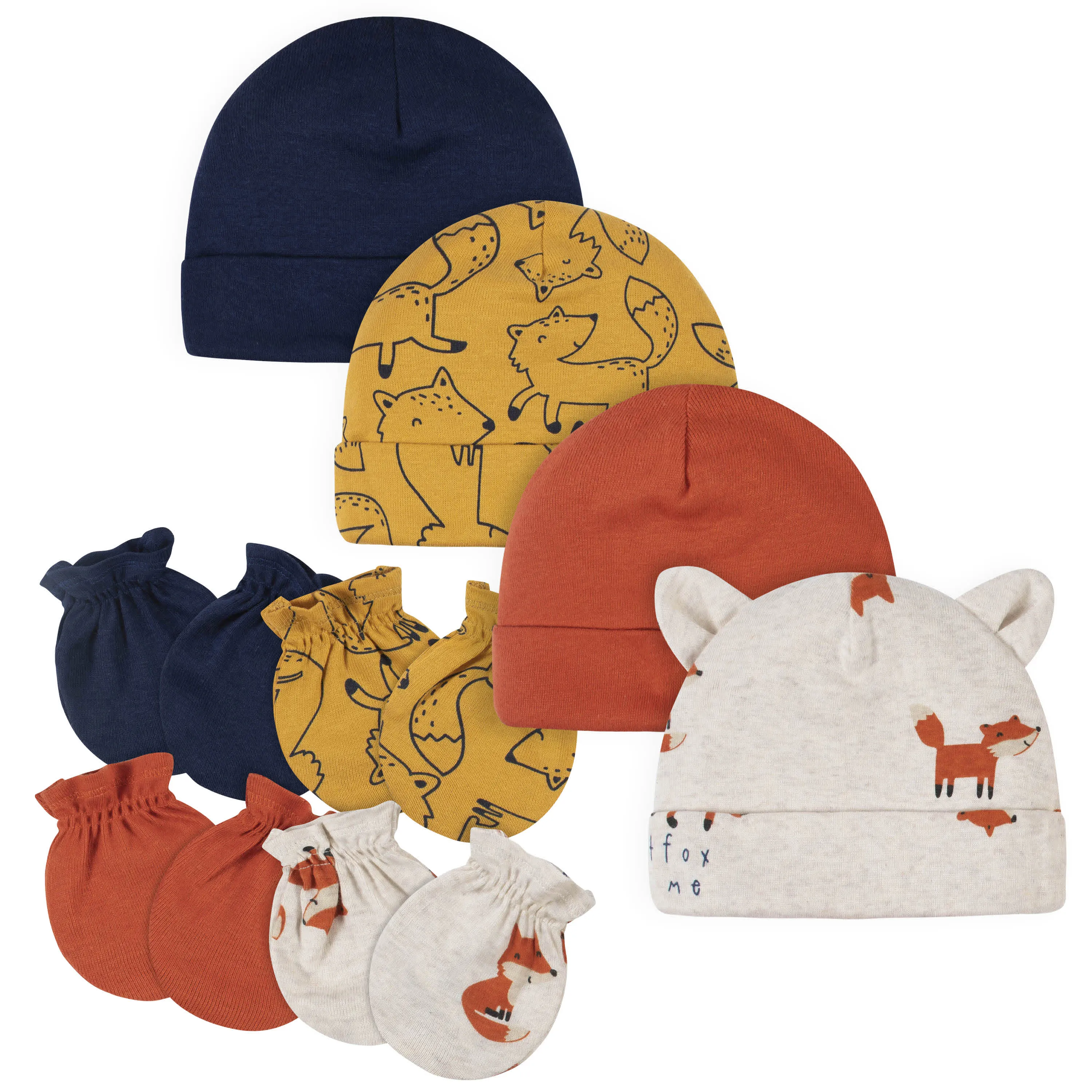 8-Piece Baby Boys Fox Caps & Mittens Set
