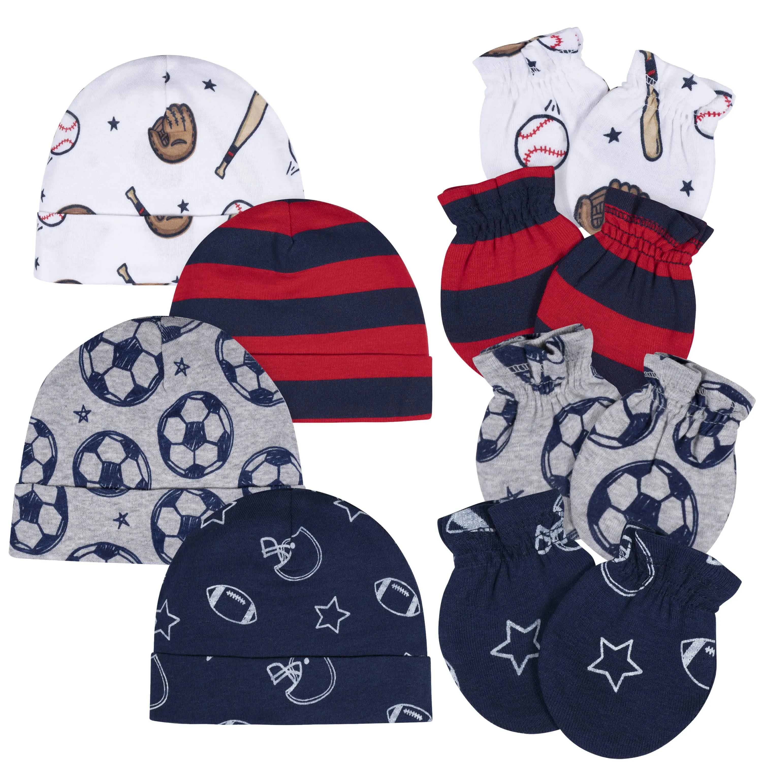 8-Piece Baby Boys All Star No Scratch Mittens & Caps Set
