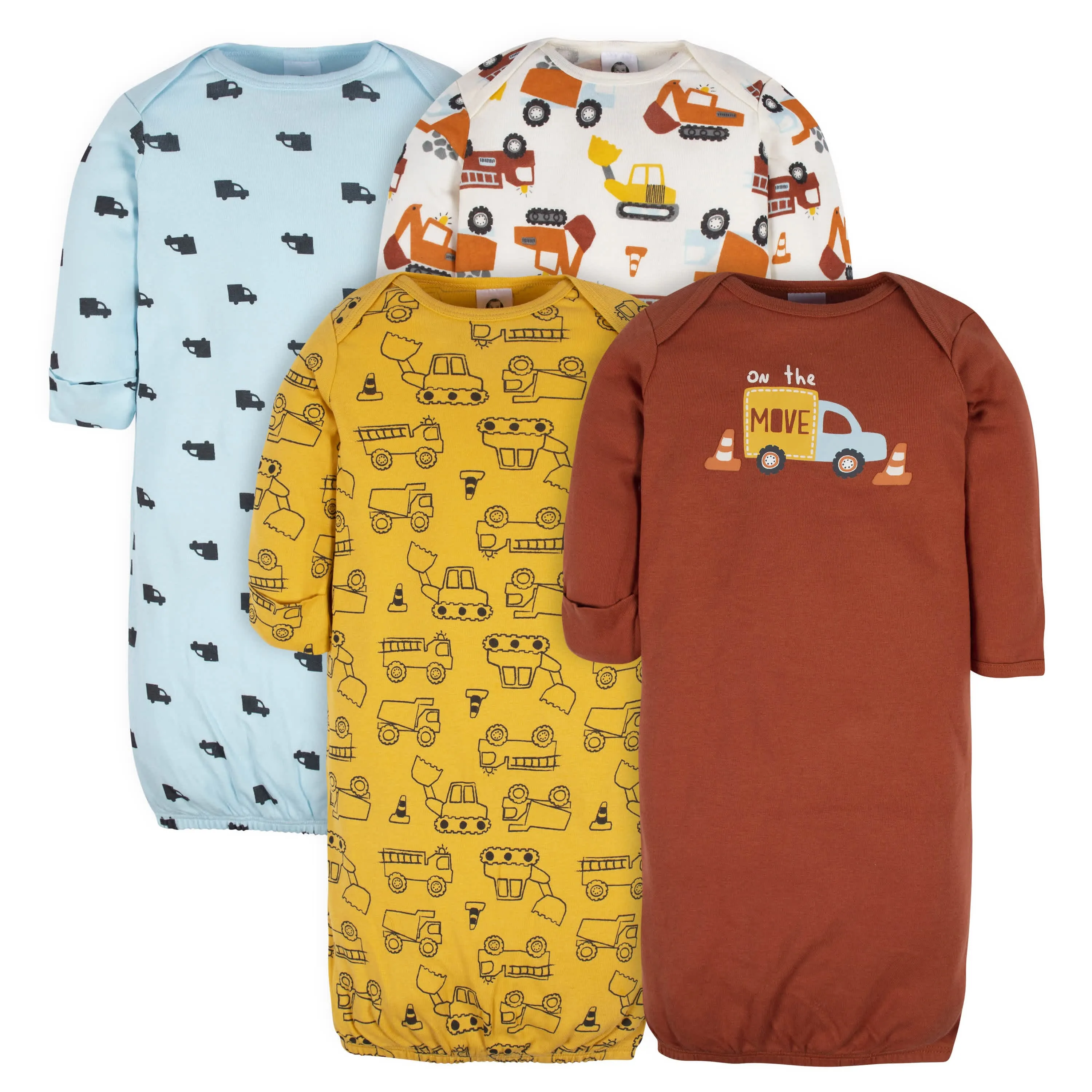 4-Pack Baby Boys Transportation Zone Gowns