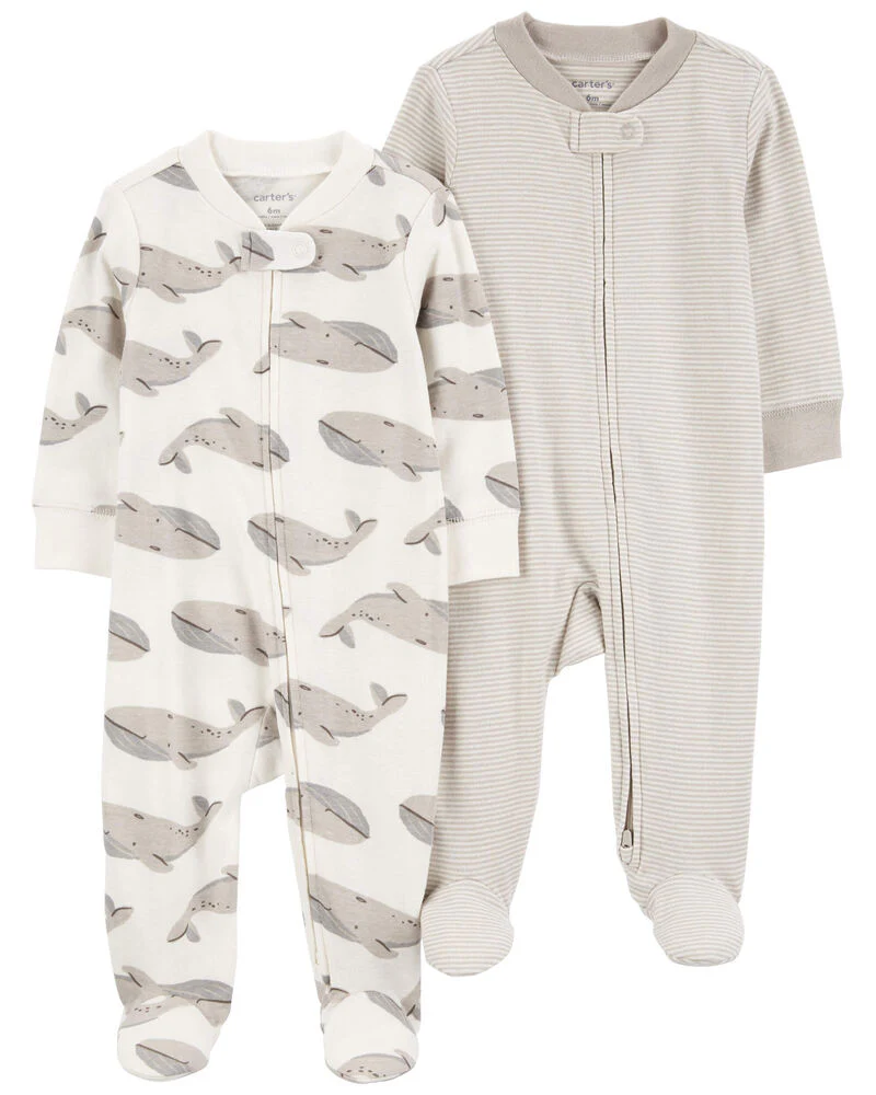 2-Pack Baby & Toddler Neutral Grey Heather Long Sleeve Turtleneck Onesies Bodysuits