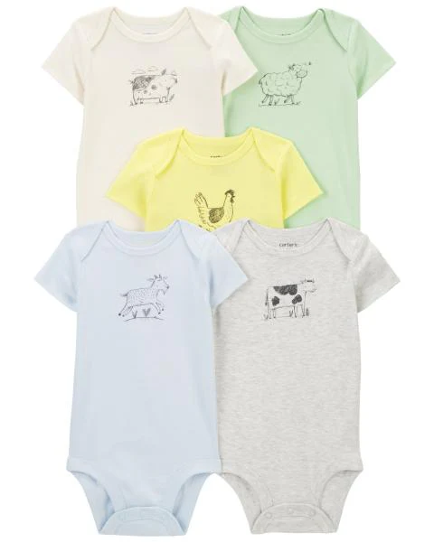 Carter's Baby 5-Pack Farm Animals Short-Sleeve Bodysuits