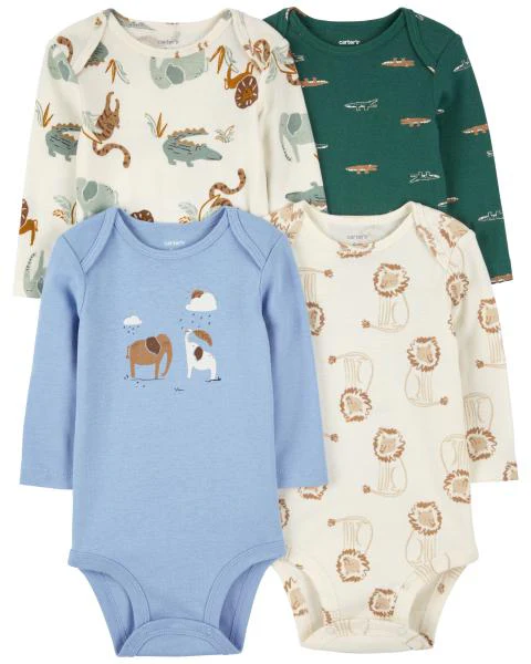 Carter's Baby 4-Pack Animals Long-Sleeve Bodysuits